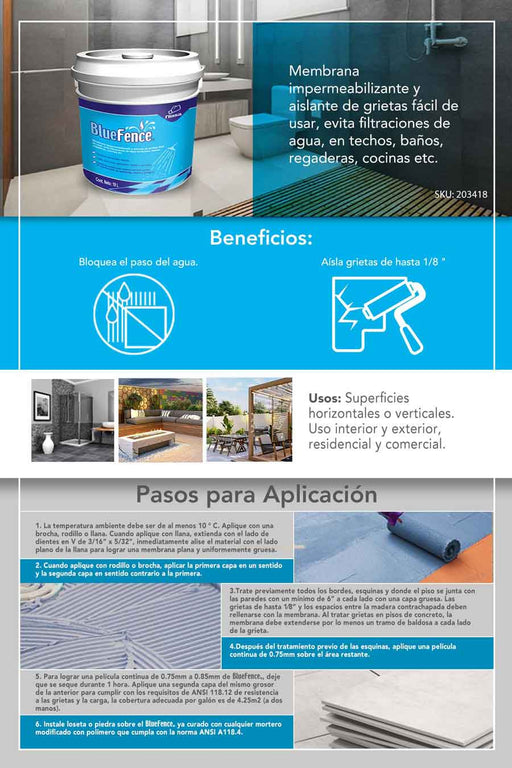 NIASAImpermeabilizante Bluefence Niasa, es una membrana y aislante de grietas de hasta 1/8 de pulgada, que evita filtraciones de agua en techos, baños, ...
