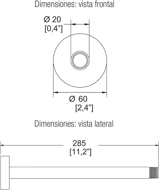 HELVEXMaterial: Cuerpo de latón con acabado cromado. Dimensiones: Longitud total de 443 mm (17,4 pulgadas), con un diámetro de chapetón de 85 mm (3,3 ...